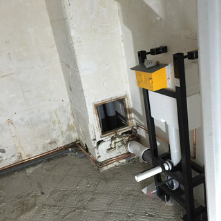 Montage des plaques de ba13 dans la cuisine. Ca fait plus propre ! Les électriciens sont très actifs eux aussi mais font aussi de gros trous dans nos murs ! Les plombiers continuent les travaux dans la salle de douche avec l'installation du wc suspendu (résultat : 2 trous de l'autre côté du mur dans l'entrée !!!)