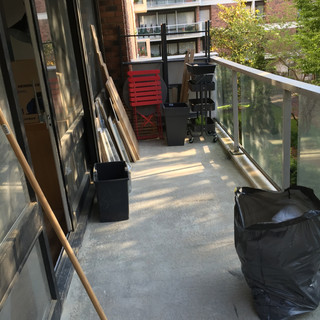 Les trous de la cuisine se ferment peu à peu (joues en chêne et noir mat pour le meuble côté entrée, porte de la colonne de 2 mètres enfin arrivée et montée, cache au dessus du micro ondes, préparation du cache au dessus du frigo), début sérieux de notre chambre (pose du papier peint et premier meuble du dressing monté en partie (sauf les clous au fond ! Les voisins n'apprécieraient pas les 30 clous a 22h30...)) bientôt dans notre chambre non ?! Rangement et nettoyage partiel de la terrasse.